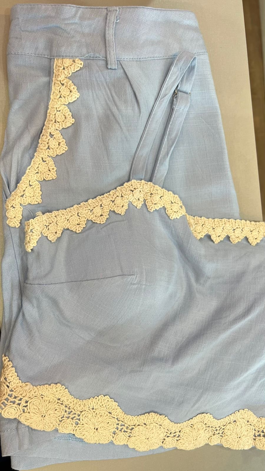 Delicado, feminino e cheio de charme! O conjunto em azul bebê é a escolha perfeita para quem ama um visual leve e sofisticado. Composto por shorts e cropped, ele se destaca pelo detalhe em barra de guipir, que traz um toque romântico e elegante à peça.