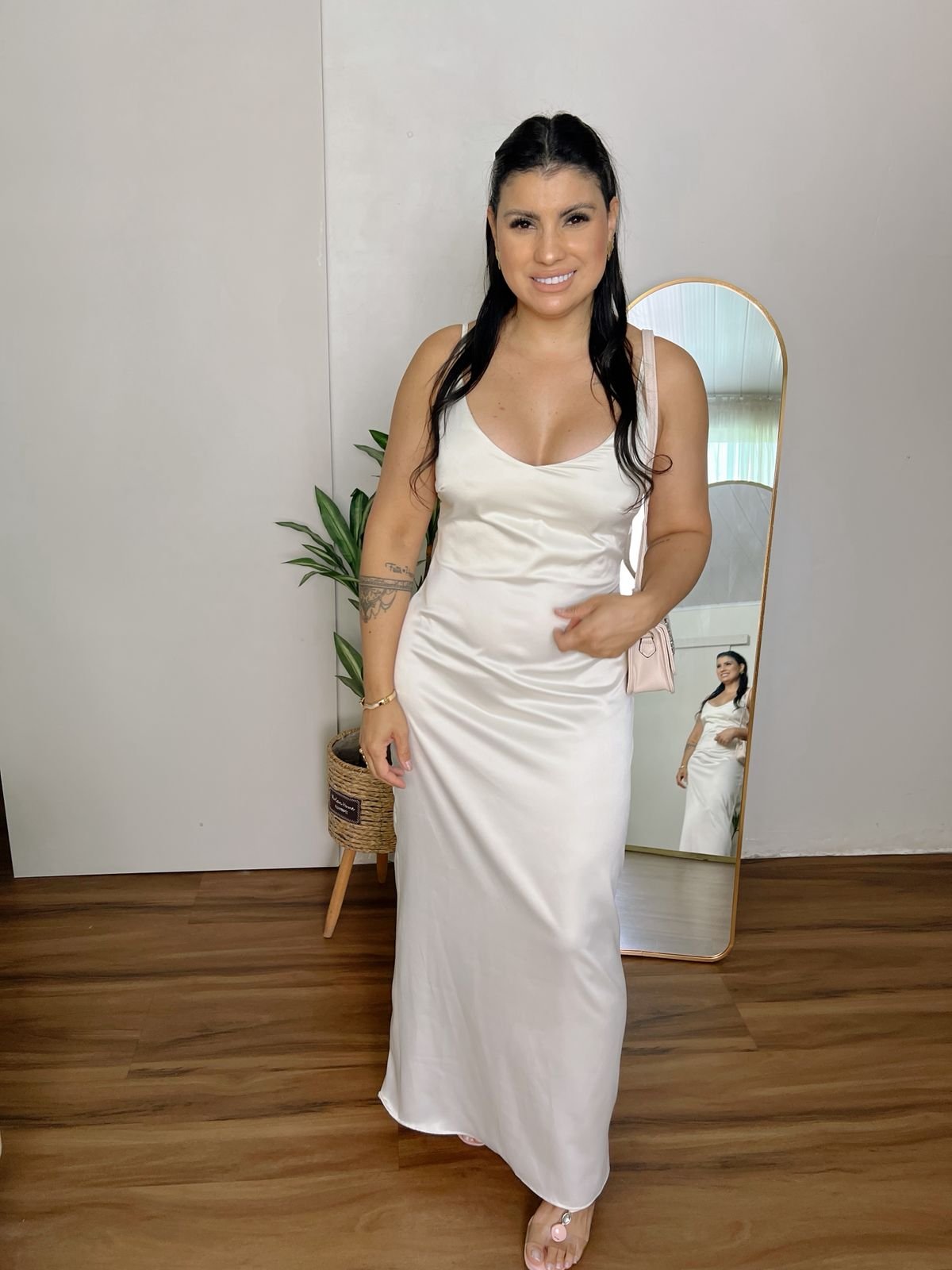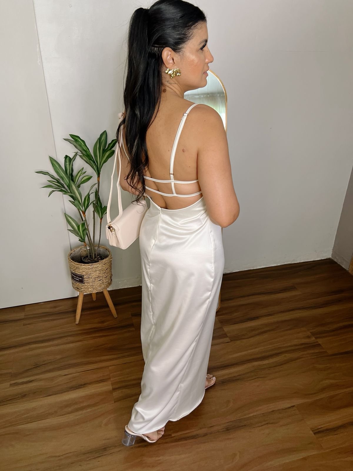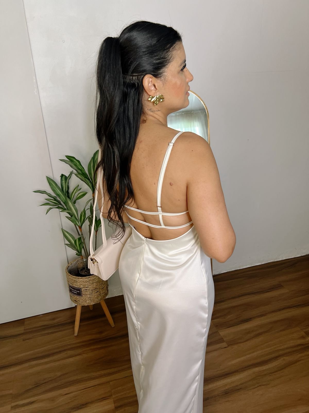 O Vestido Cetim Costas Abertas foi criado para destacar a feminilidade com um toque moderno e minimalista. Seu tecido com leve brilho proporciona um caimento impecável, enquanto o design com tiras nas costas traz charme e sensualidade na medida certa.