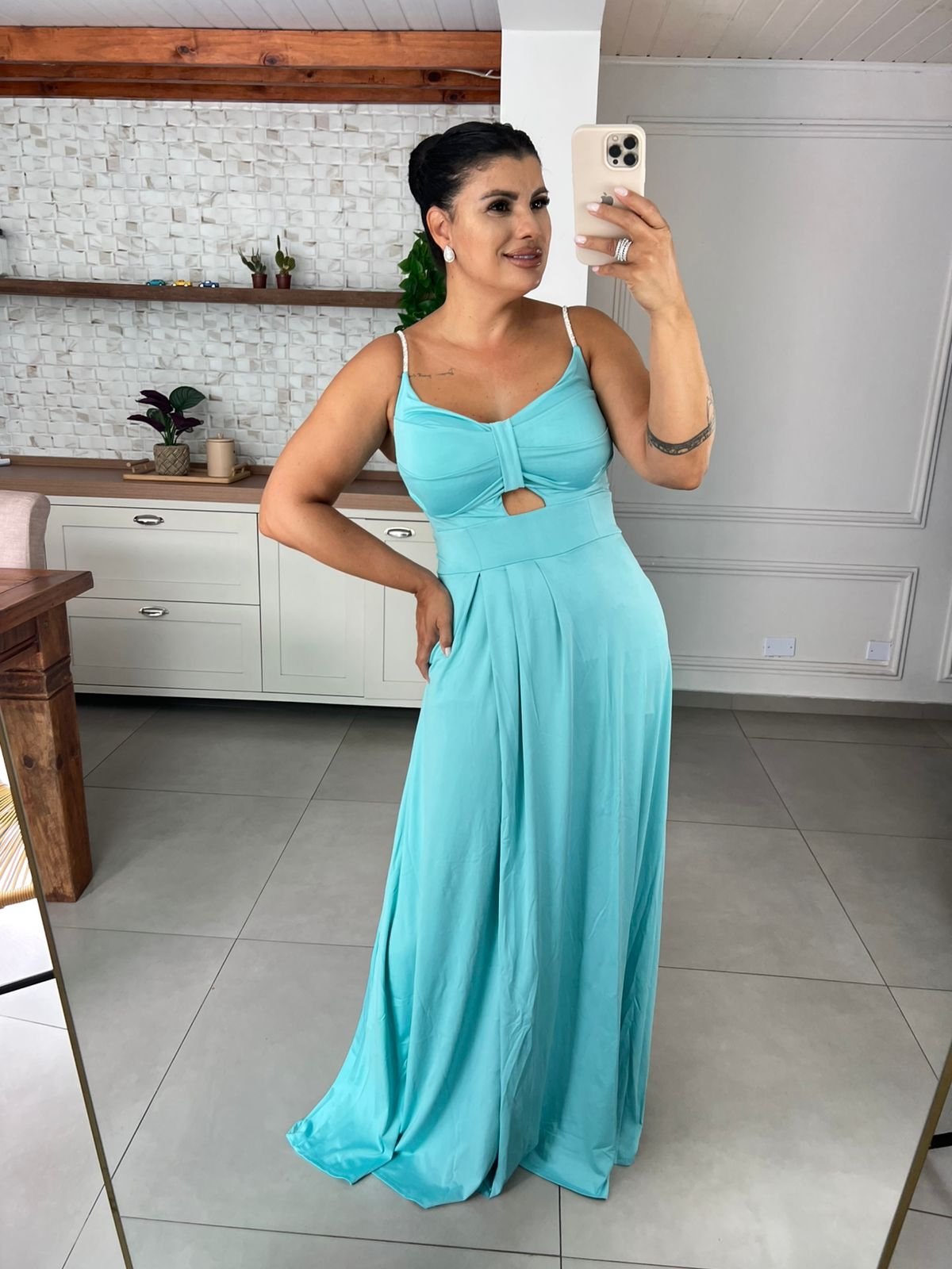 Leve, elegante e marcante na medida certa. O Vestido Longo Verde Água é a escolha perfeita para quem deseja um visual sofisticado com toque de sensualidade.