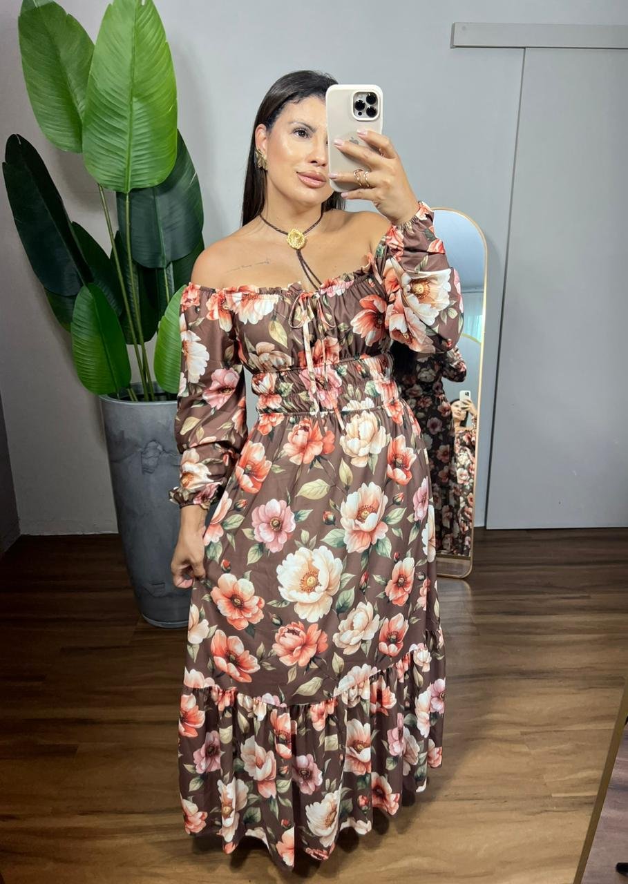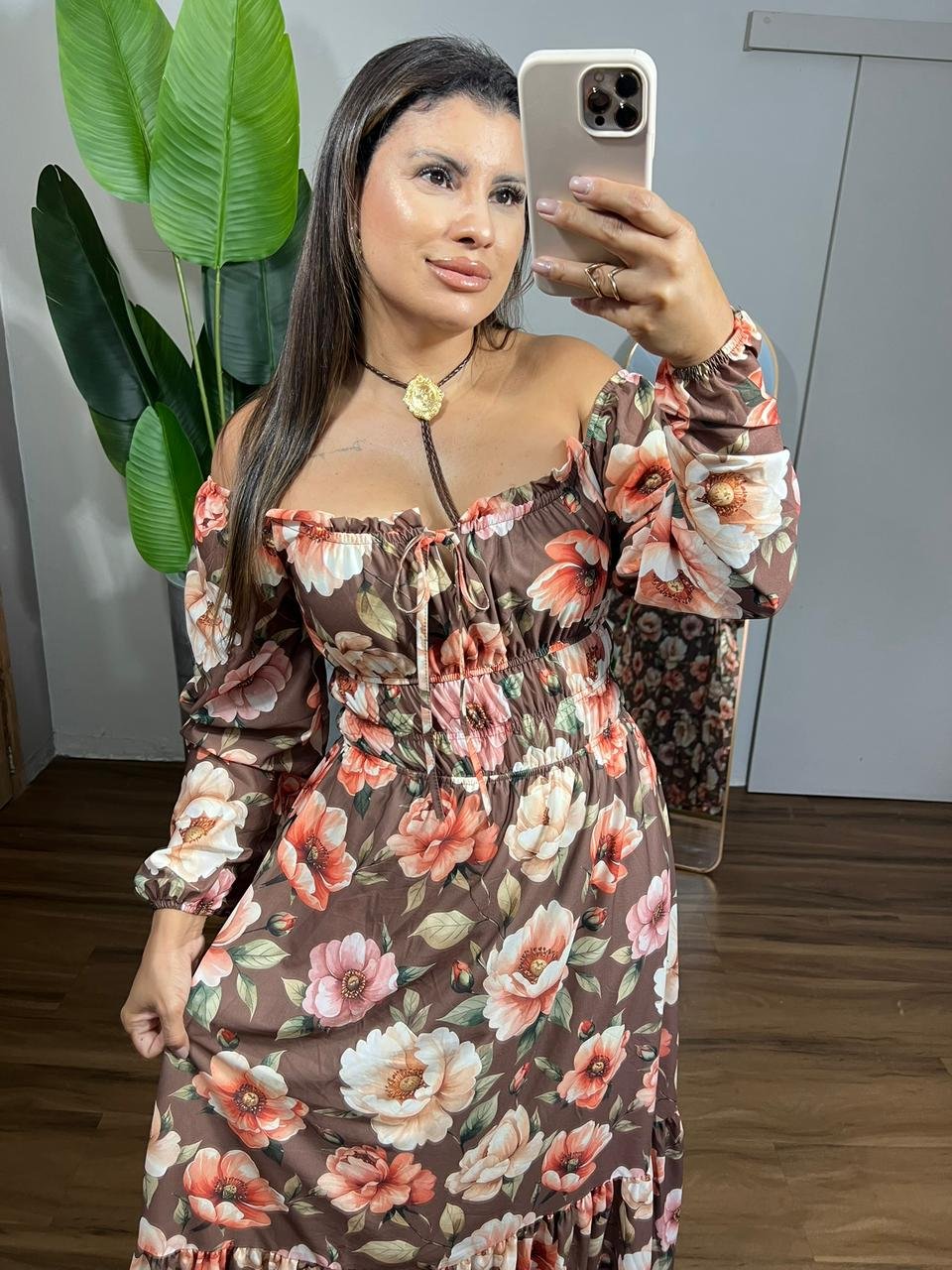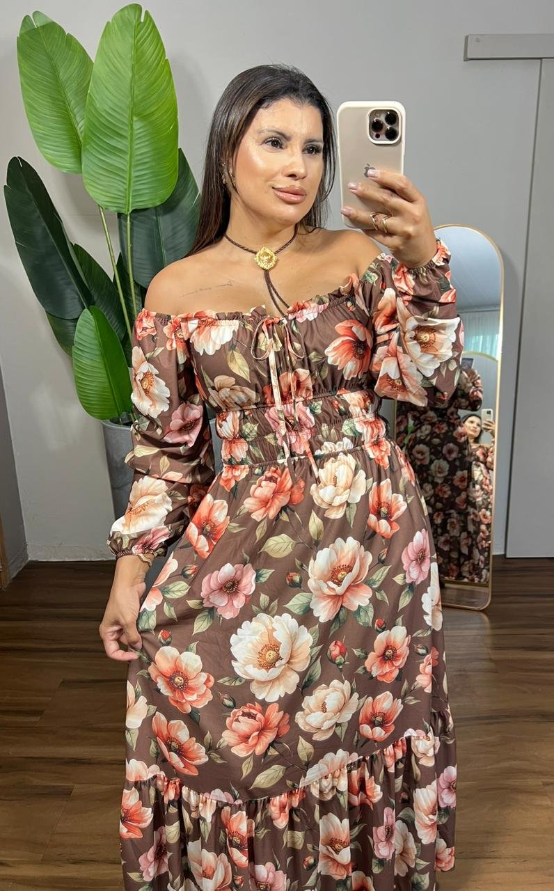 Vestido um modelo mais camponesa veste um tamanho até 42 – tecido leve e acinturado.