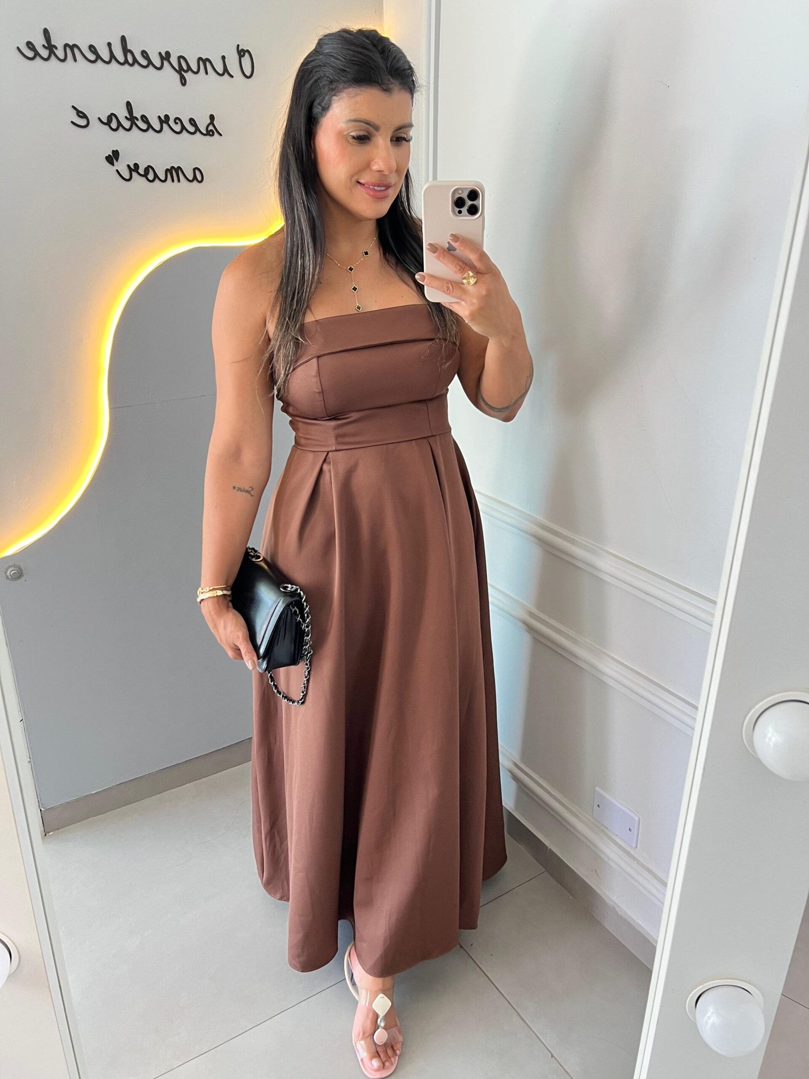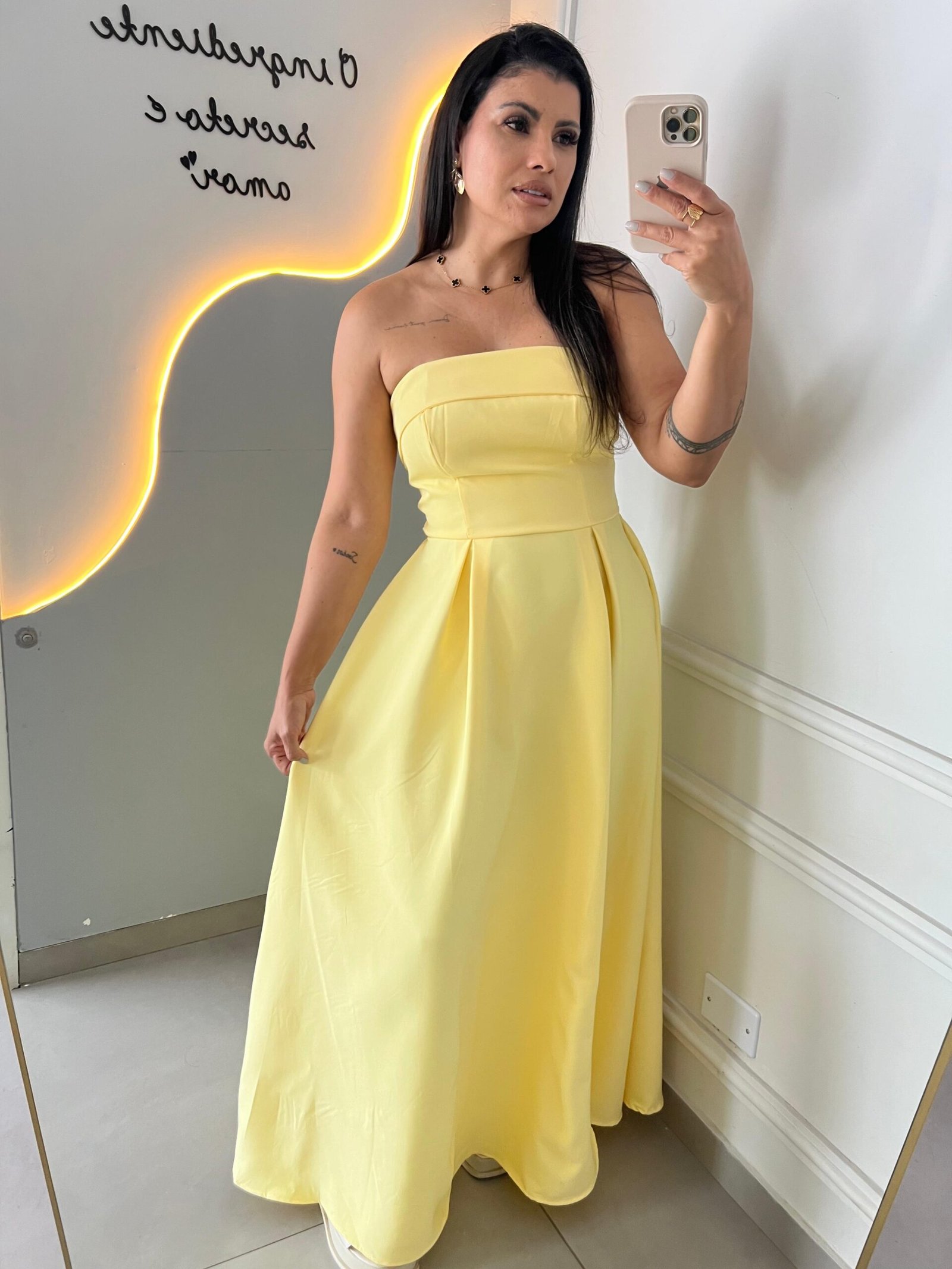 * Decote Estruturado: O recorte tomara que caia possui acabamento impecável, garantindo segurança e um visual “limpo”.